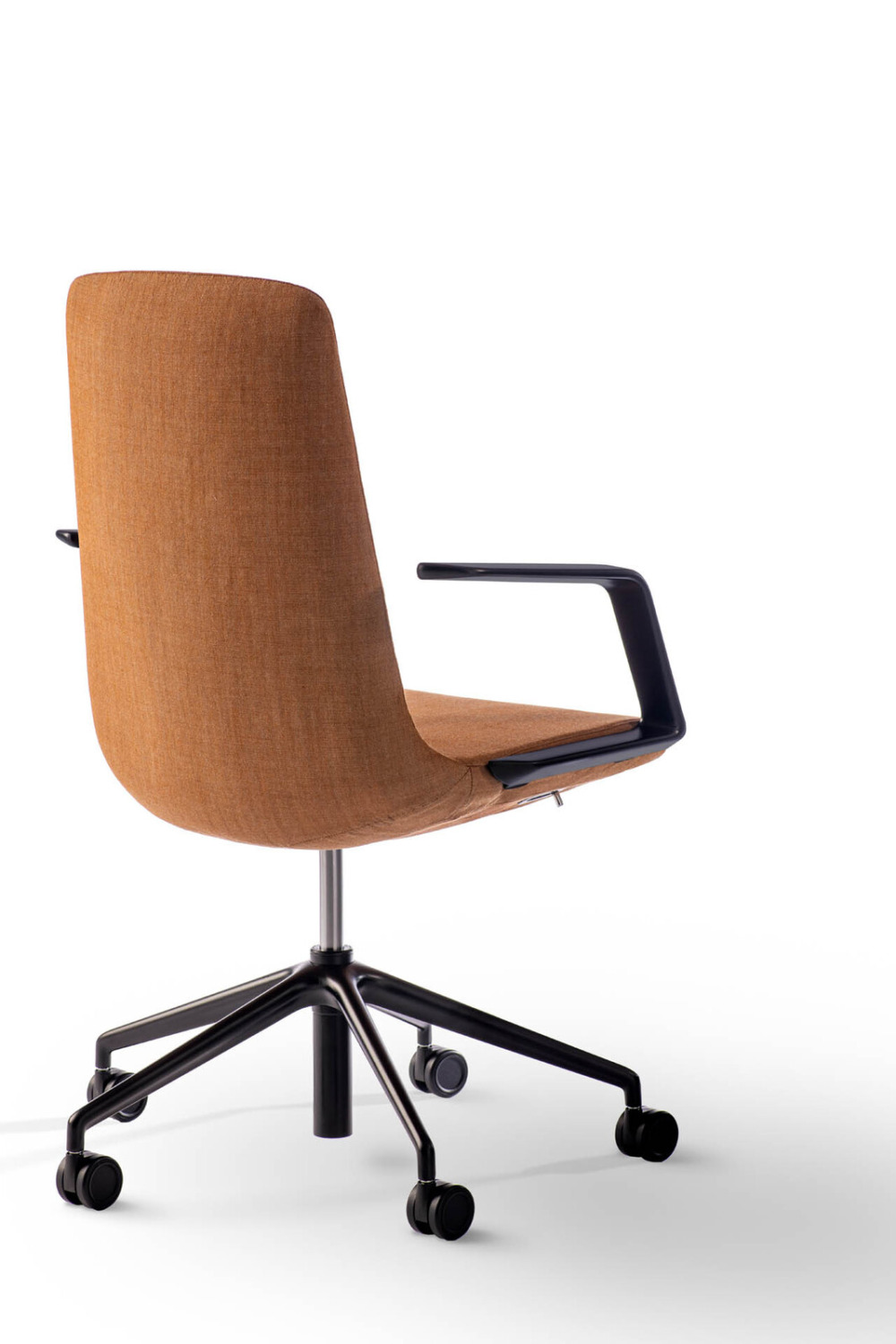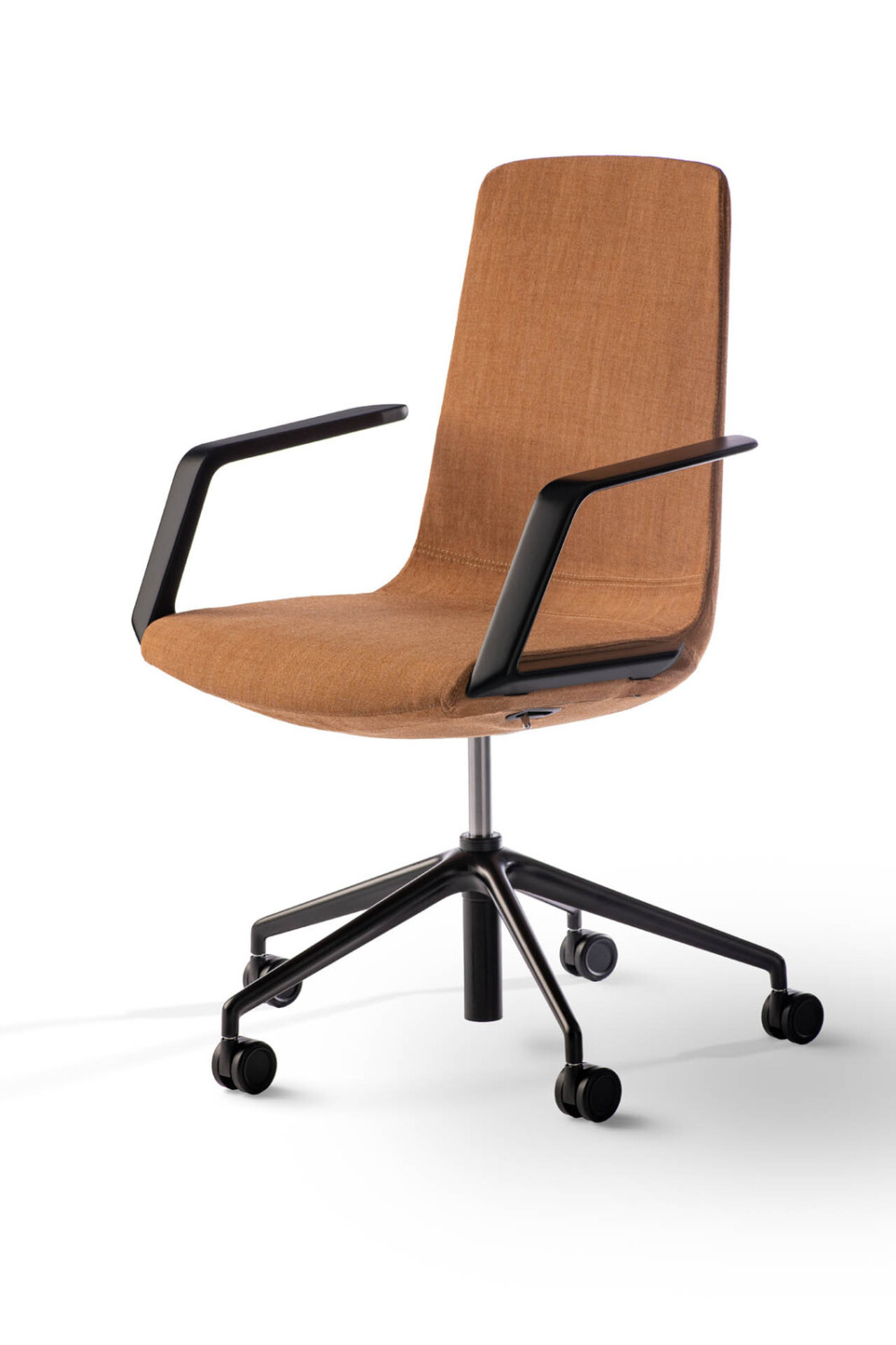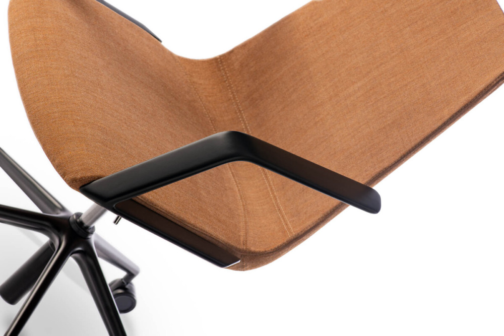 Executive Chair – Medium Backrest Seat in moulded fire-retardant polyurethane, fully upholstered. 5-star base in painted die-cast aluminium, Ø 700 mm. Castors Ø 60 mm.