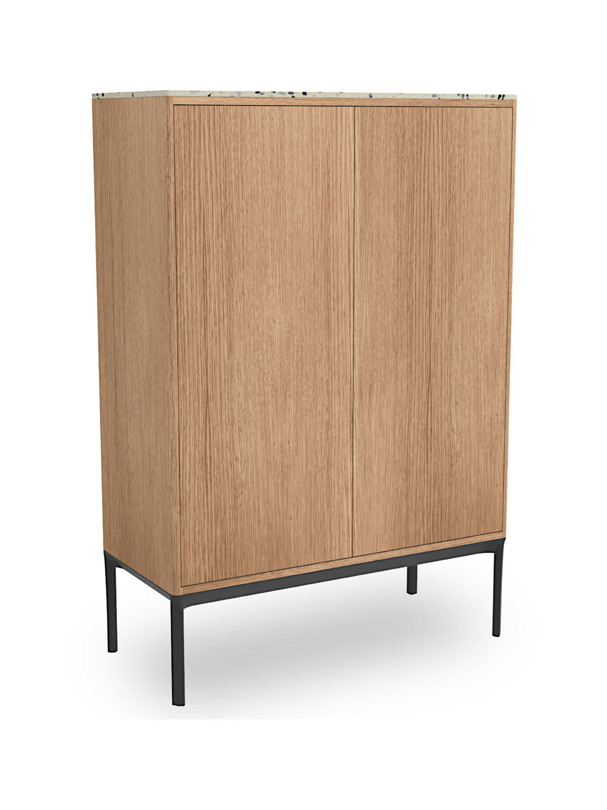 Armadio modulare, corpo centrale in legno, ante con sistema push-pull e ripiani interni; piano