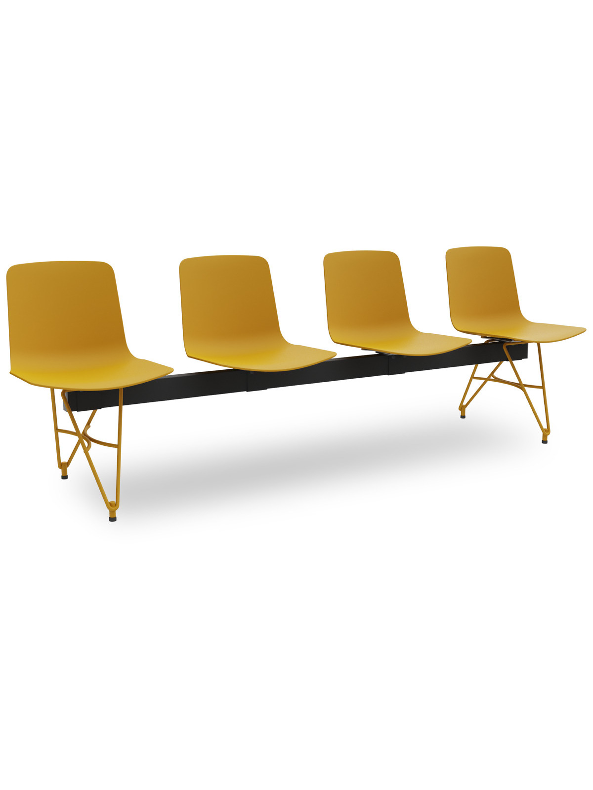 Panca 4 posti con gambe in tondino Ø 12mm, scocca in polipropilene.
