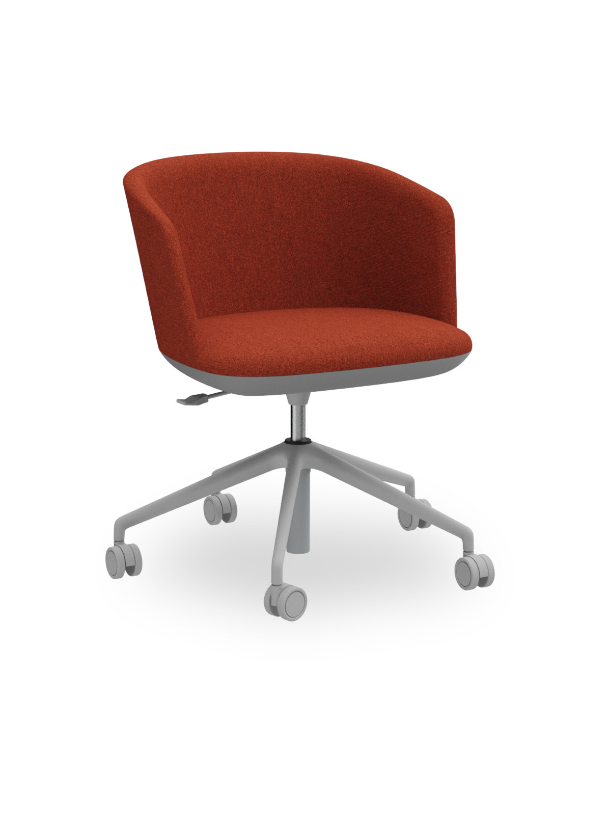 Poltrona in poliuretano ignifugo stampato, completamente rivestita, alzata gas, base 5 razze in alluminio, ruote Ø 60.