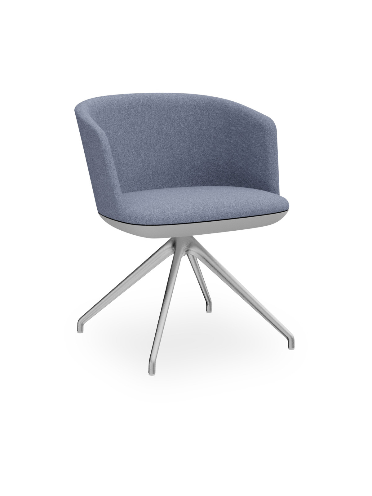 Poltrona in poliuretano ignifugo stampato, completamente rivestita, base conica in alluminio.