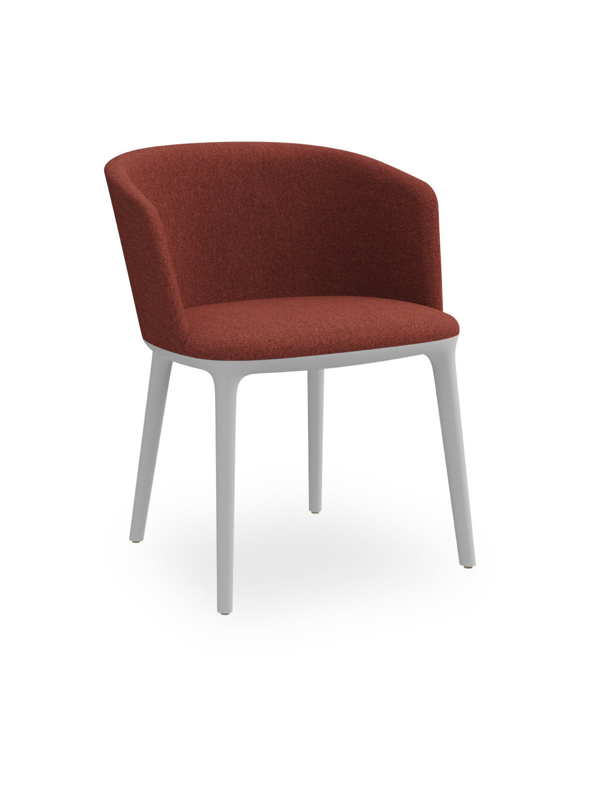 Poltrona in poliuretano ignifugo stampato, completamente rivestita, base in polipropilene.