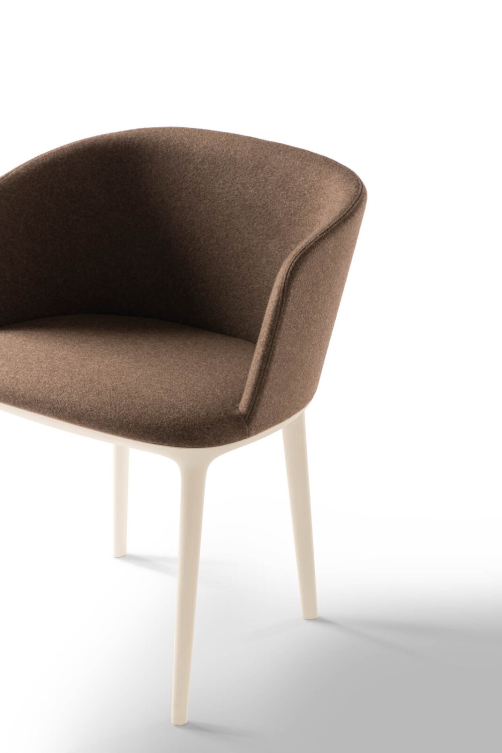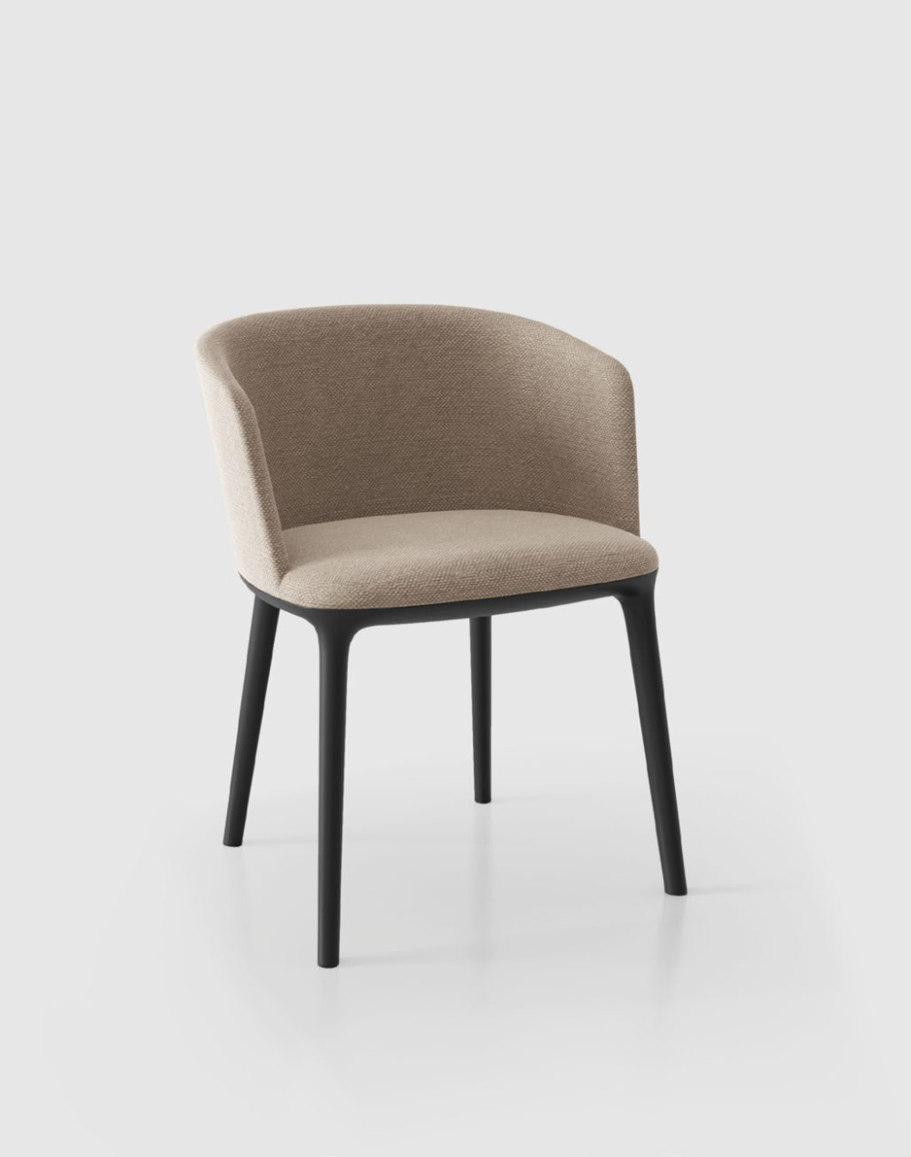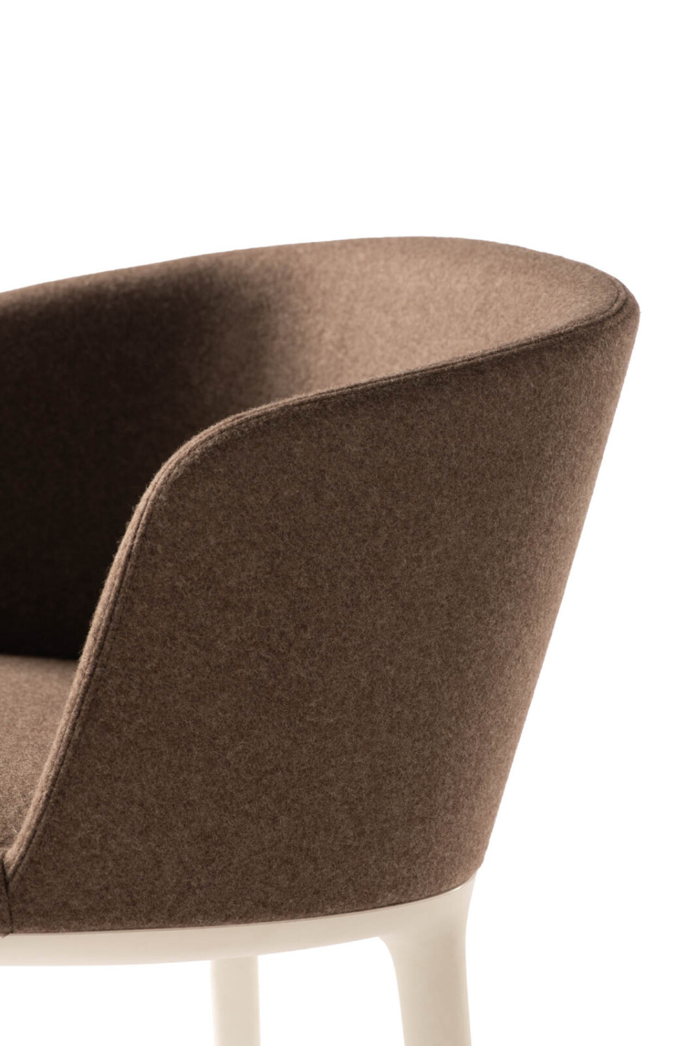 Poltrona in poliuretano ignifugo stampato, completamente rivestita, base in polipropilene.