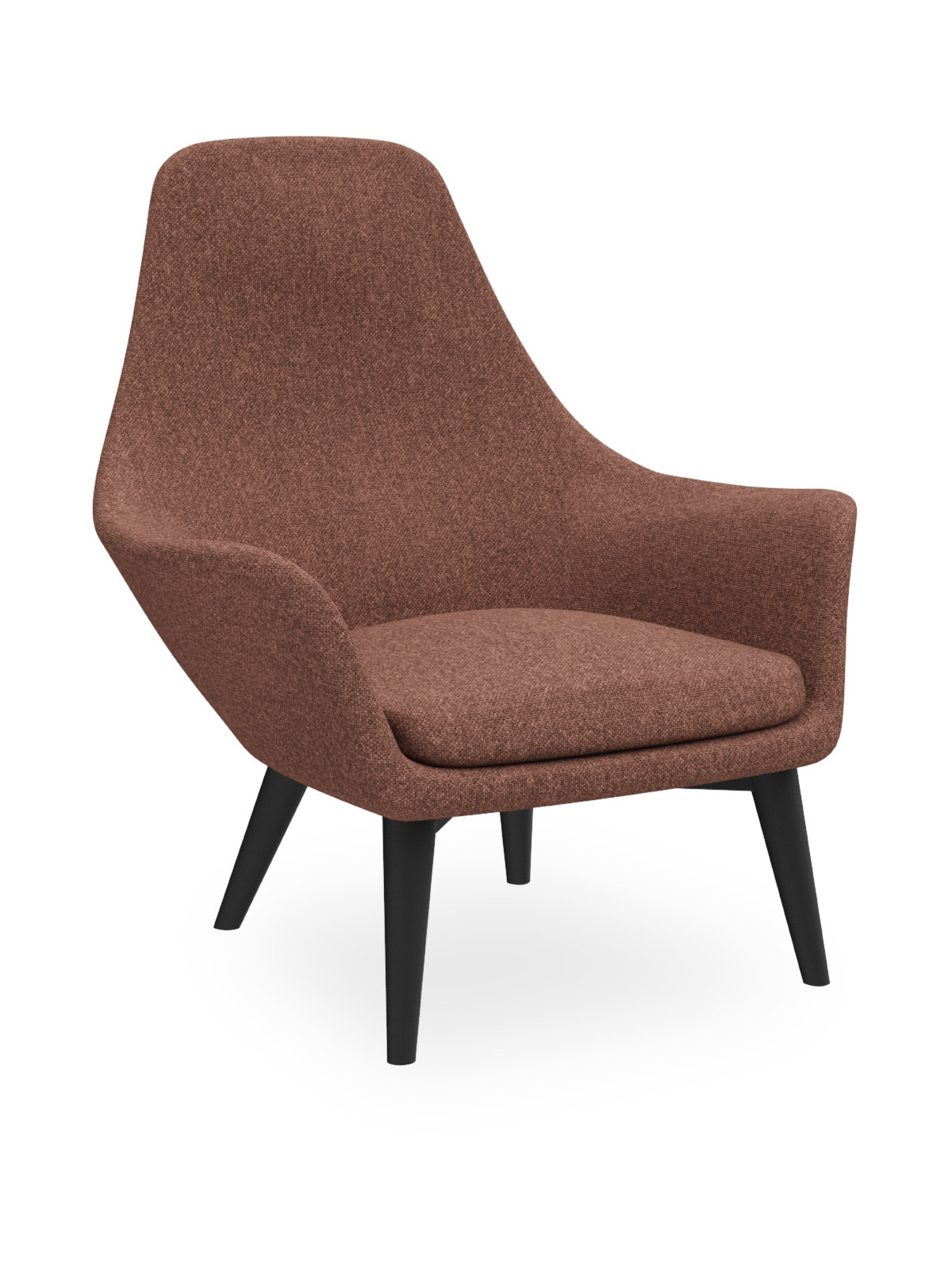 Poltrona lounge, schienale alto, in poliuretano ignifugo stampato, completamente rivestita, gambe metallo.