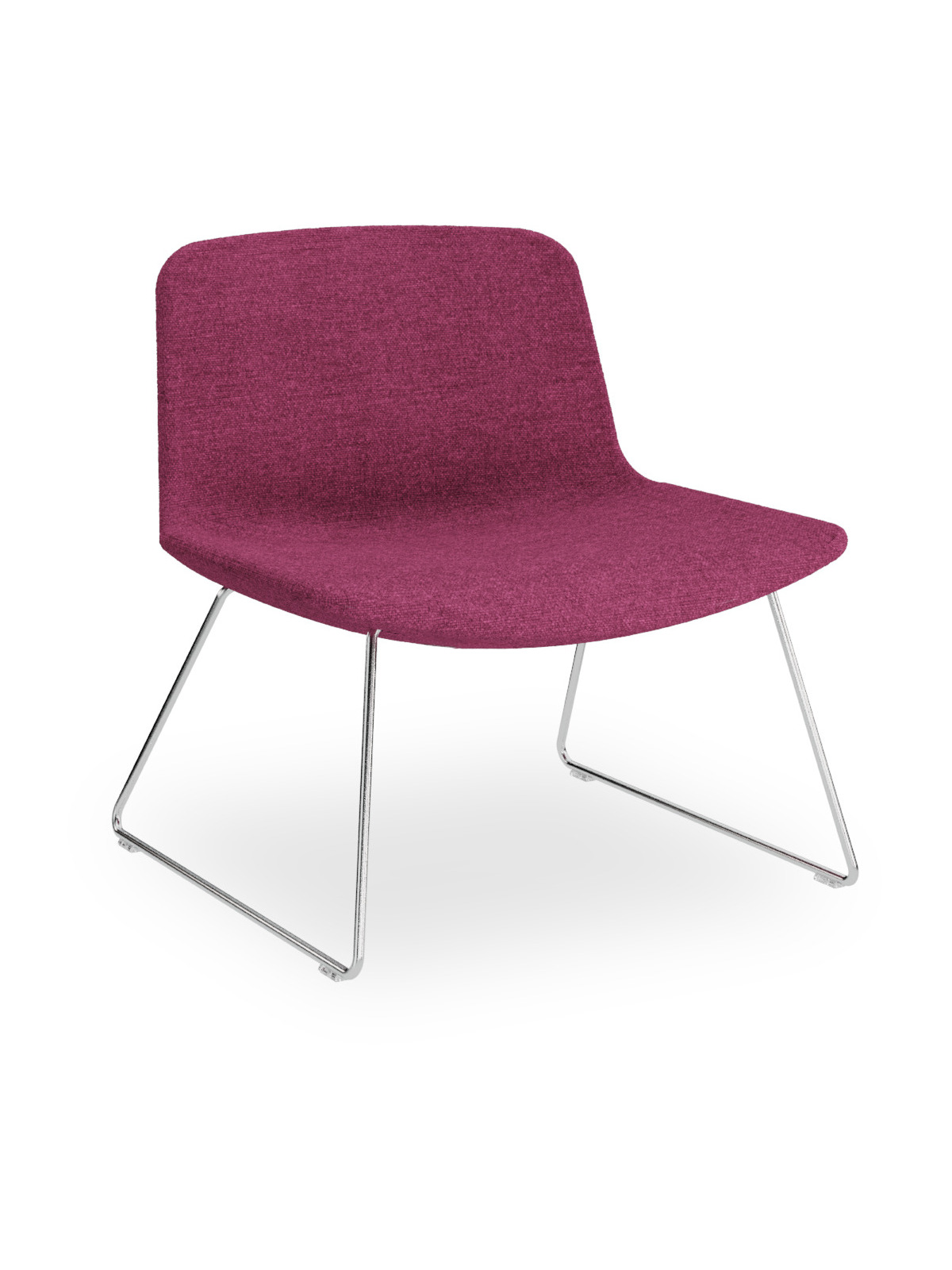 Poltrona lounge, schienale basso, in poliuretano ignifugo stampato, completamente rivestita, base slitta Ø 12mm.