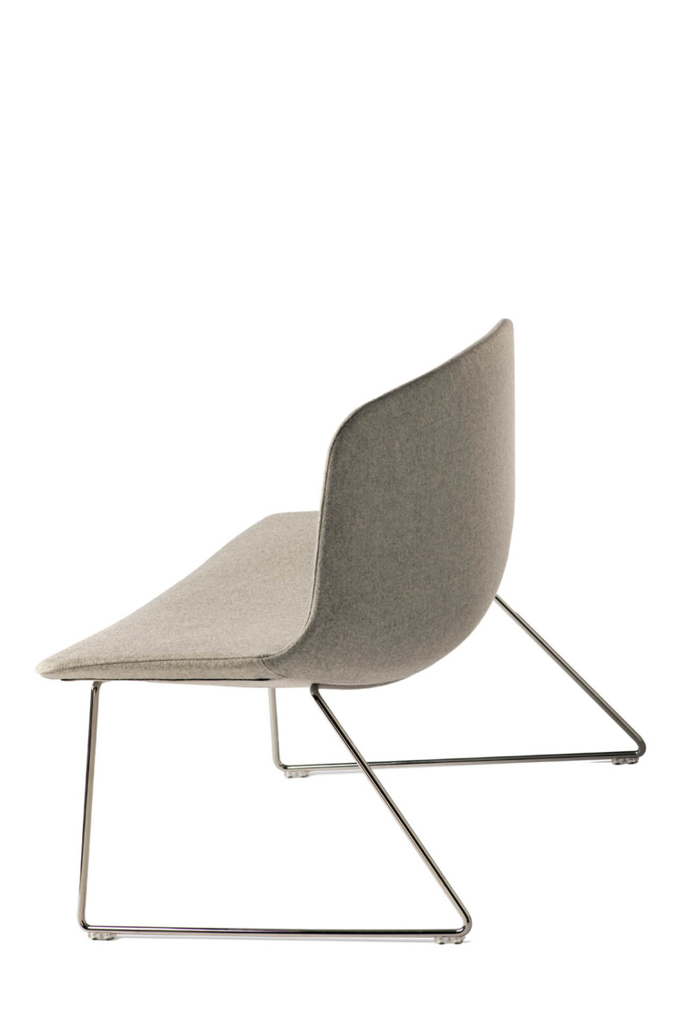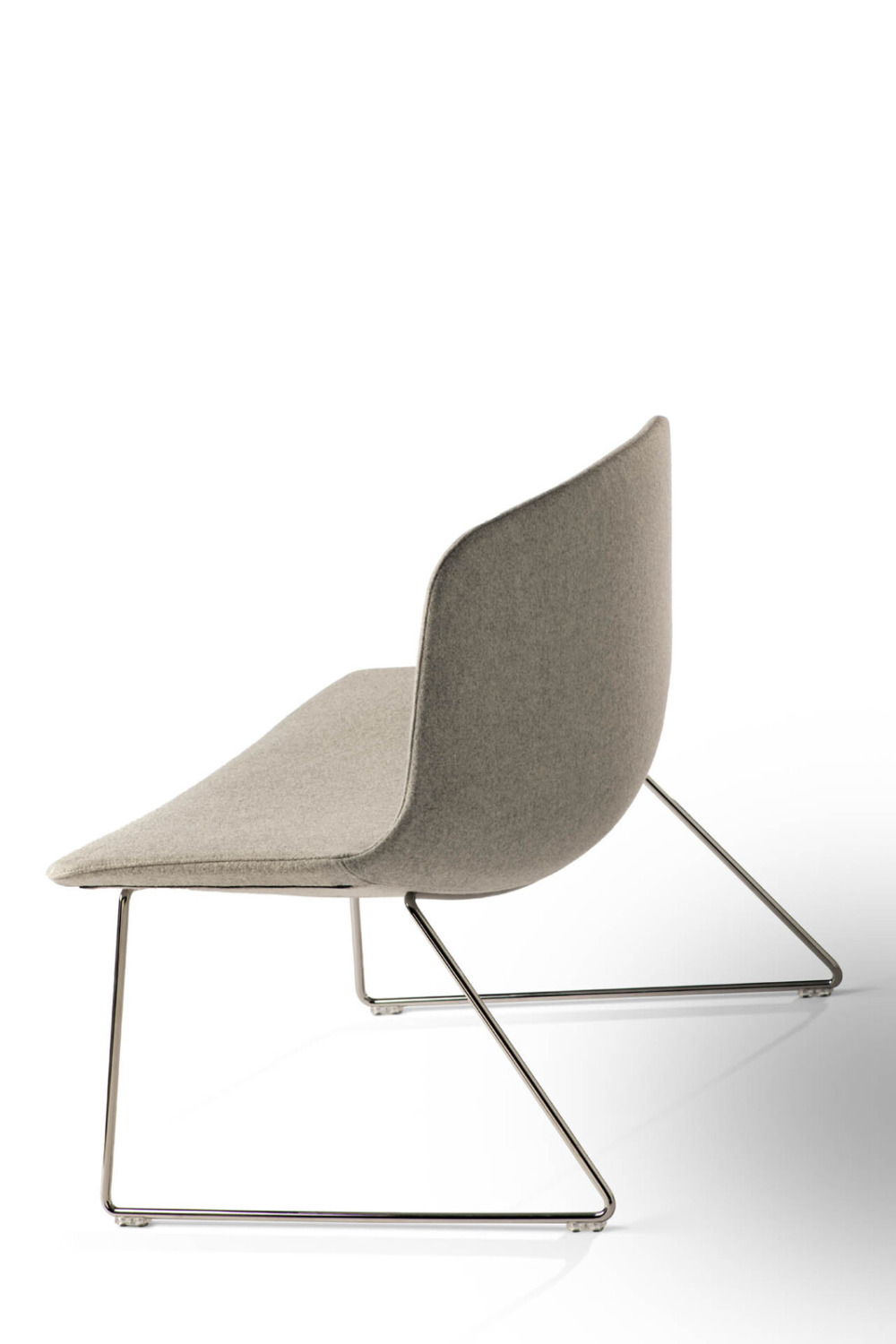 Poltrona lounge, schienale basso, in poliuretano ignifugo stampato, completamente rivestita, base slitta Ø 12mm.