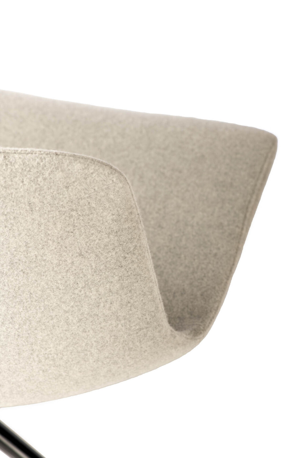 Poltrona lounge, schienale basso, in poliuretano ignifugo stampato, completamente rivestita, con inserto interno in metallo per maggiore resistenza e durabilità. Base slitta Ø 12mm.
