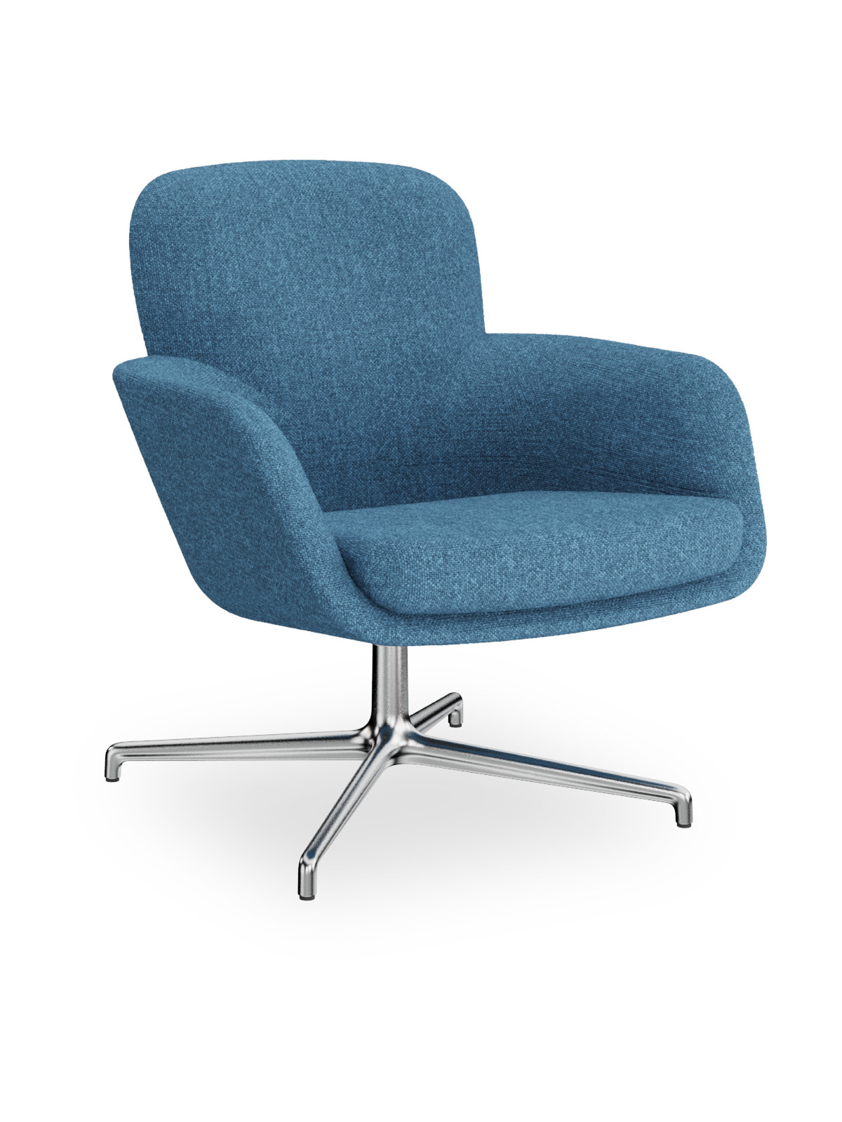 Poltrona lounge, schienale medio, in poliuretano ignifugo stampato, completamente rivestita, con cuscino nella seduta in gomma per maggiore comfort. Base 4 razze in alluminio pressofuso.