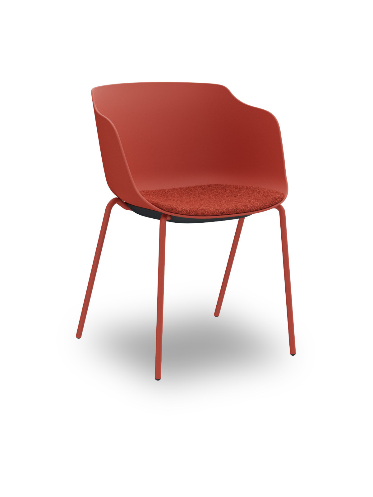 Poltroncina polipropilene, gambe metallo Ø16mm. Versione con sedile tappezzato.