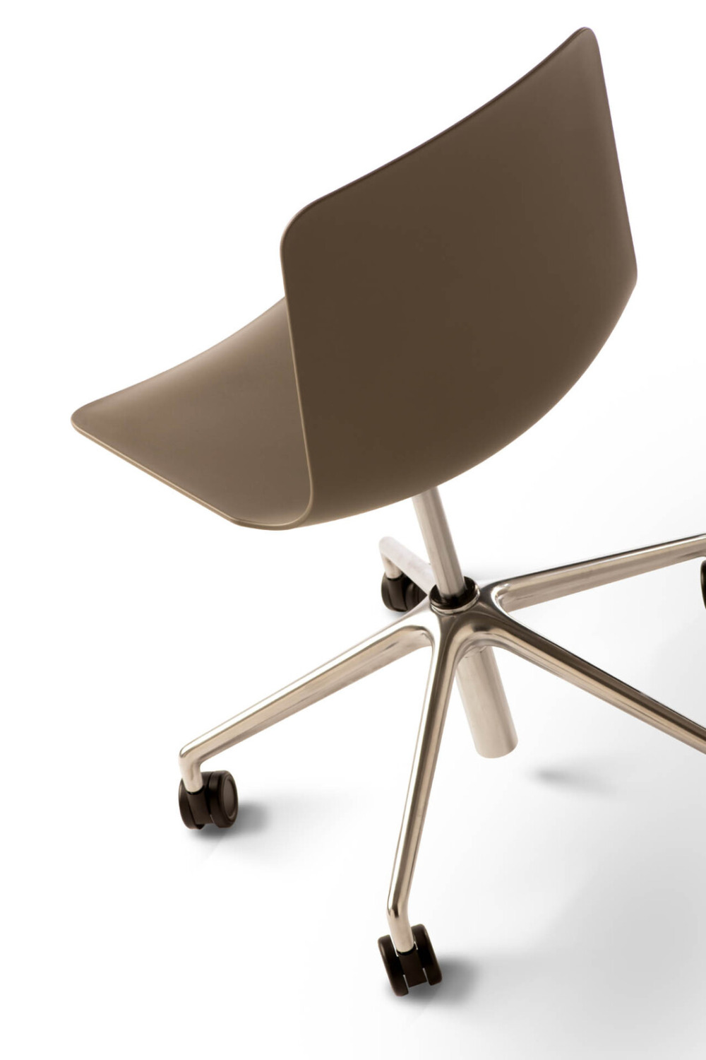 Sedia girevole scocca polipropilene, alzata gas, base 5 razze in alluminio, ruote Ø 60.