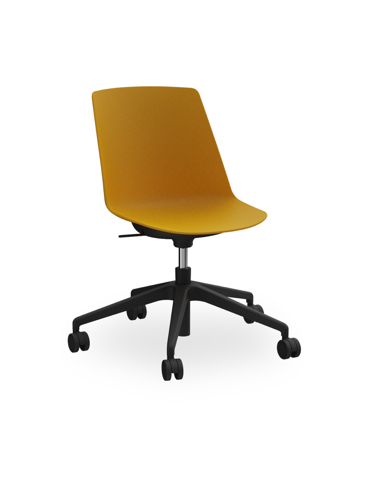 Sedia girevole scocca polipropilene, alzata gas, base 5 razze in nylon, ruote Ø 60.