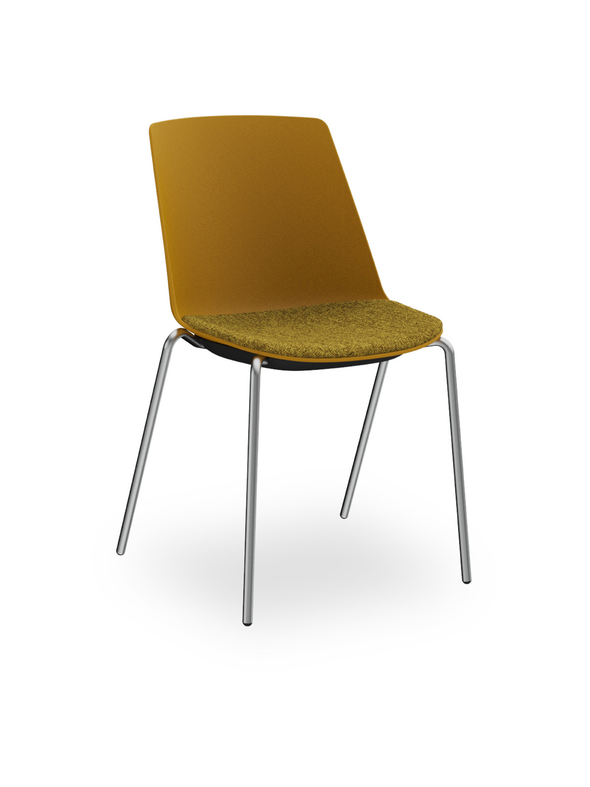 Sedia impilabile in polipropilene, gambe in metallo Ø18mm. Versione con sedile tappezzato.