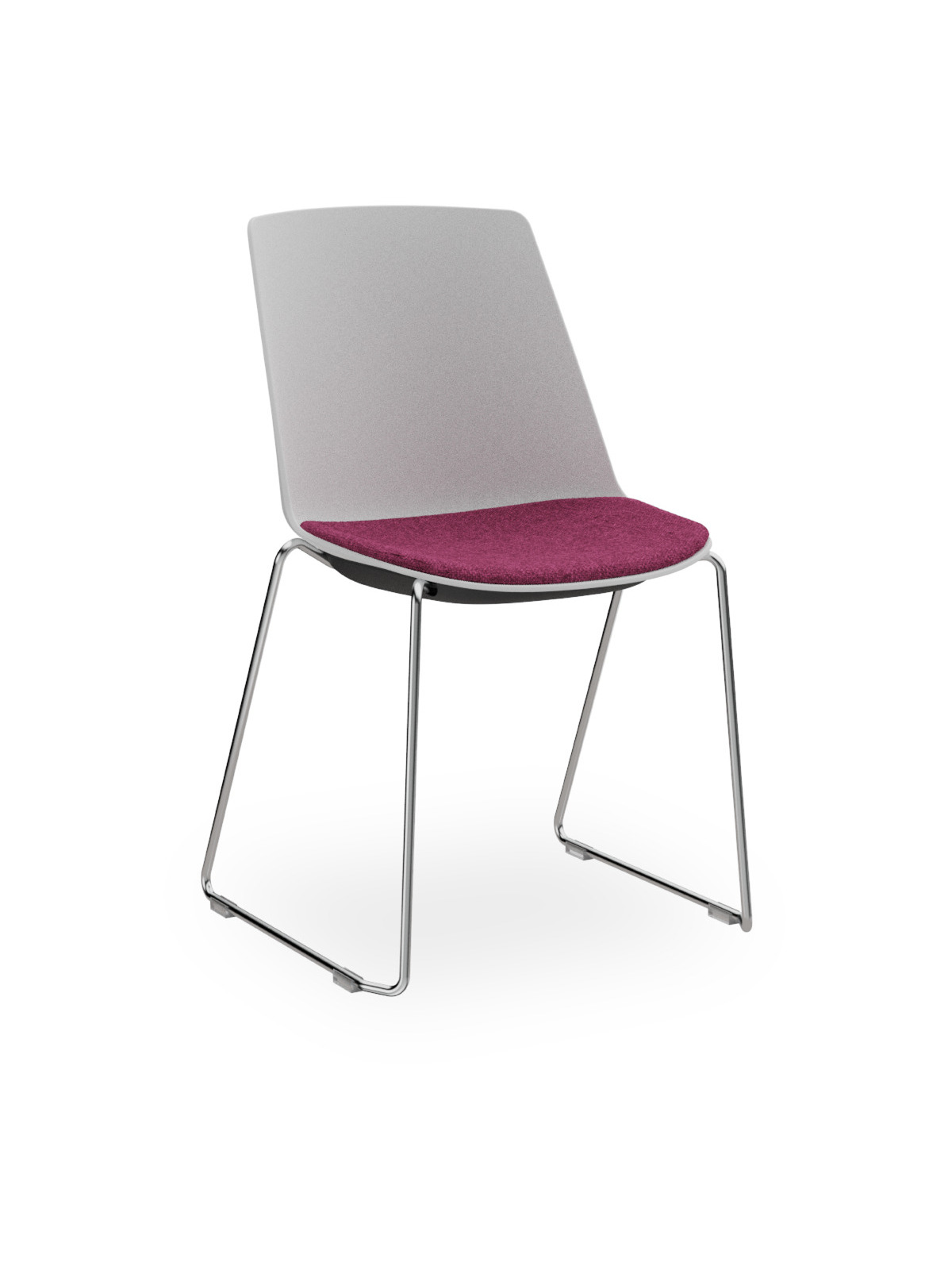 Sedia impilabile in polipropilene, telaio a slitta Ø12mm. Versione con sedile tappezzato.