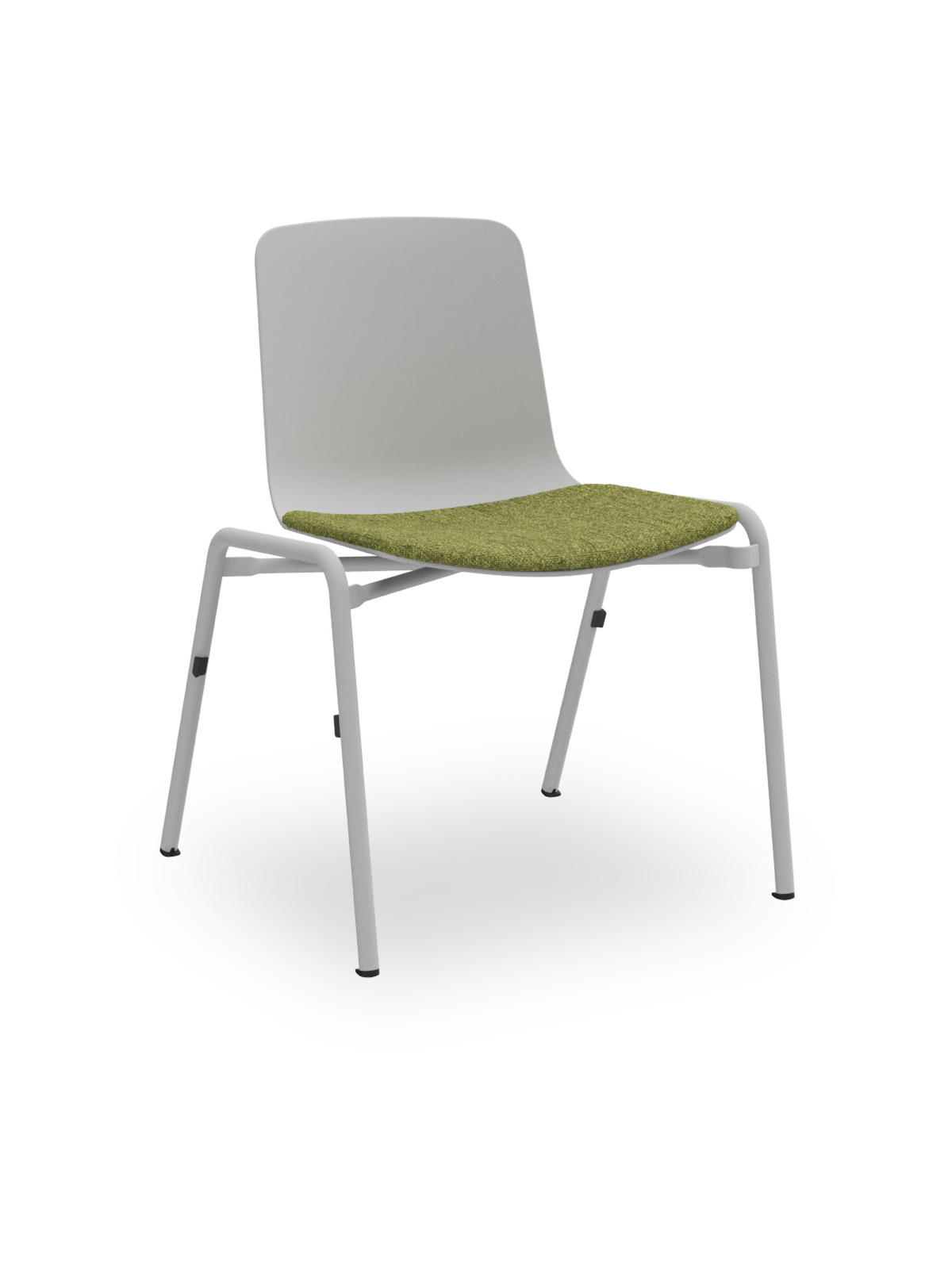 Sedia in polipropilene impilabile, struttura e gambe in metallo con tecnologia conference per aggancio laterale. Versione con sedile tappezzato.