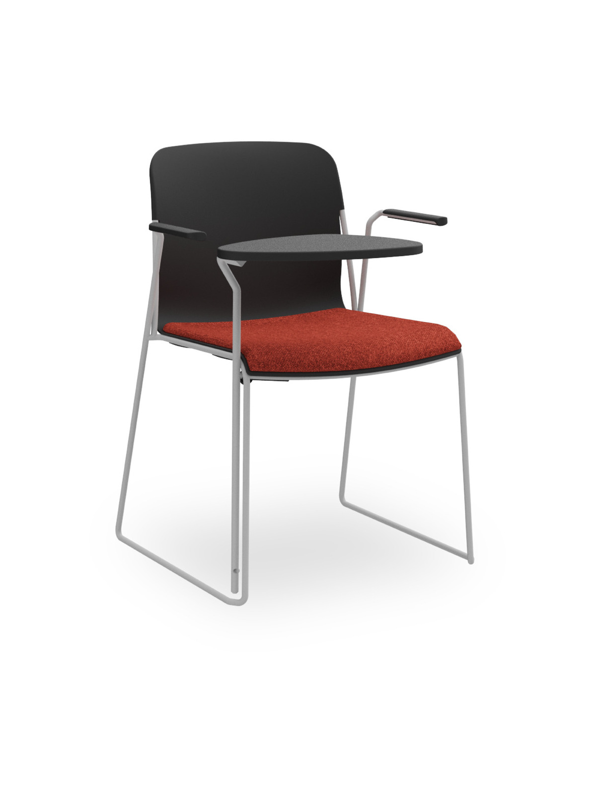 Sedia polipropilene con braccioli, telaio a slitta Ø12 mm e tavoletta. Versione con sedile tappezzato.