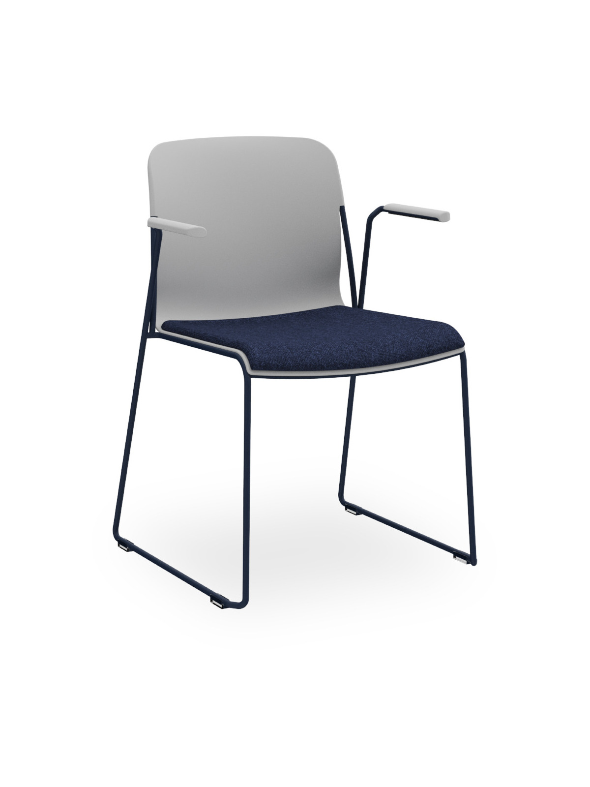 Sedia polipropilene con braccioli, telaio a slitta Ø12 mm. Versione con sedile tappezzato.