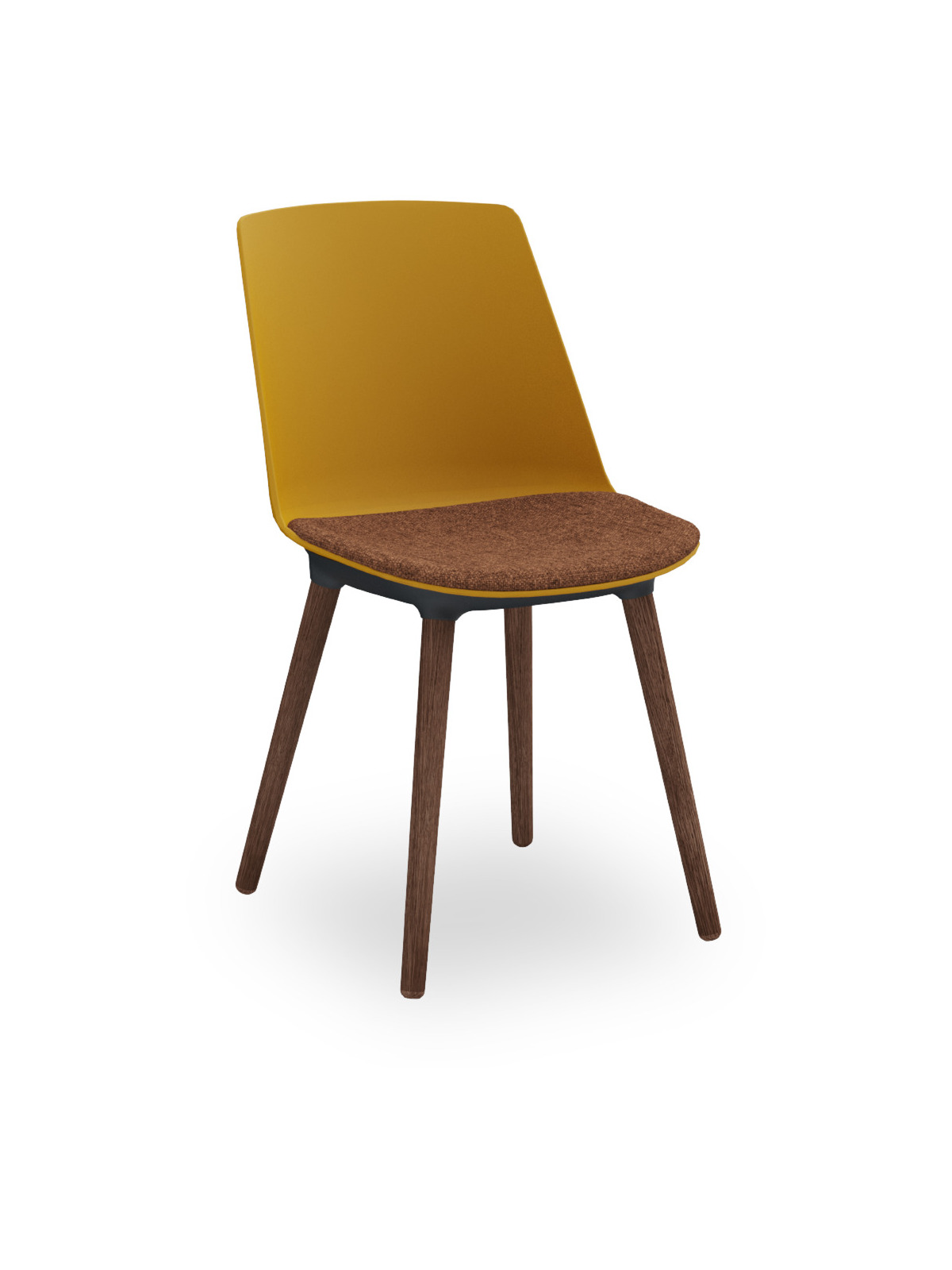Sedia polipropilene, gambe legno. Versione con sedile tappezzato.