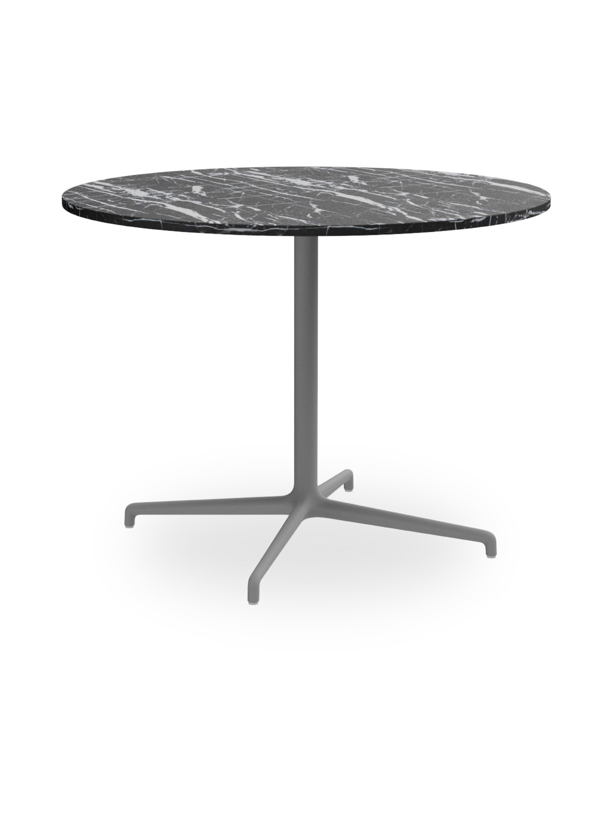 Tavolo Bistrò h74 Ø100, struttura metallo con base 4 razze, top disponibile in diverse dimensioni e finiture.