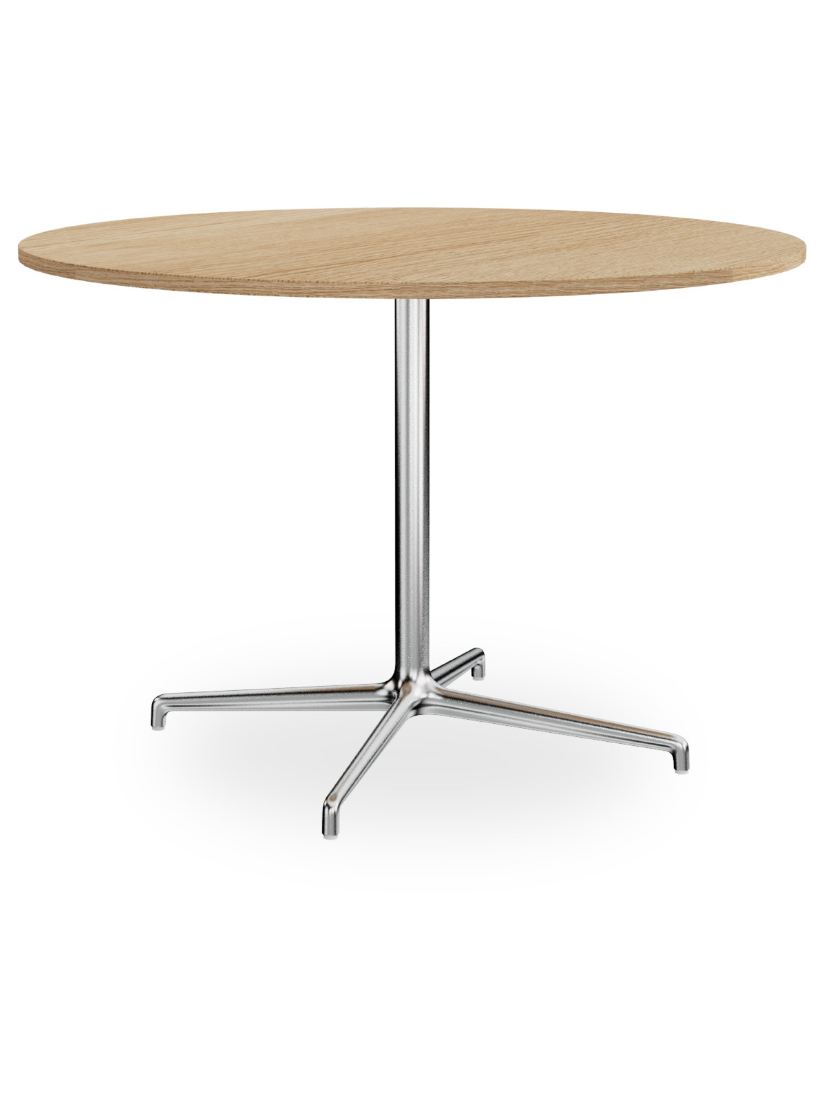 Tavolo Bistrò h74 Ø110, struttura metallo con base 4 razze, top disponibile in diverse dimensioni e finiture.