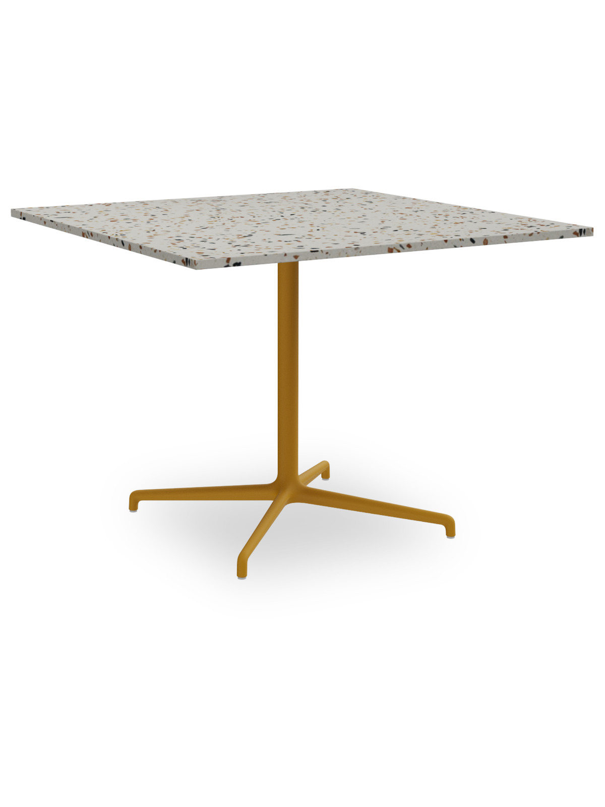 Tavolo Bistrò h74 100×100, struttura metallo con base 4 razze, top disponibile in diverse dimensioni e finiture.