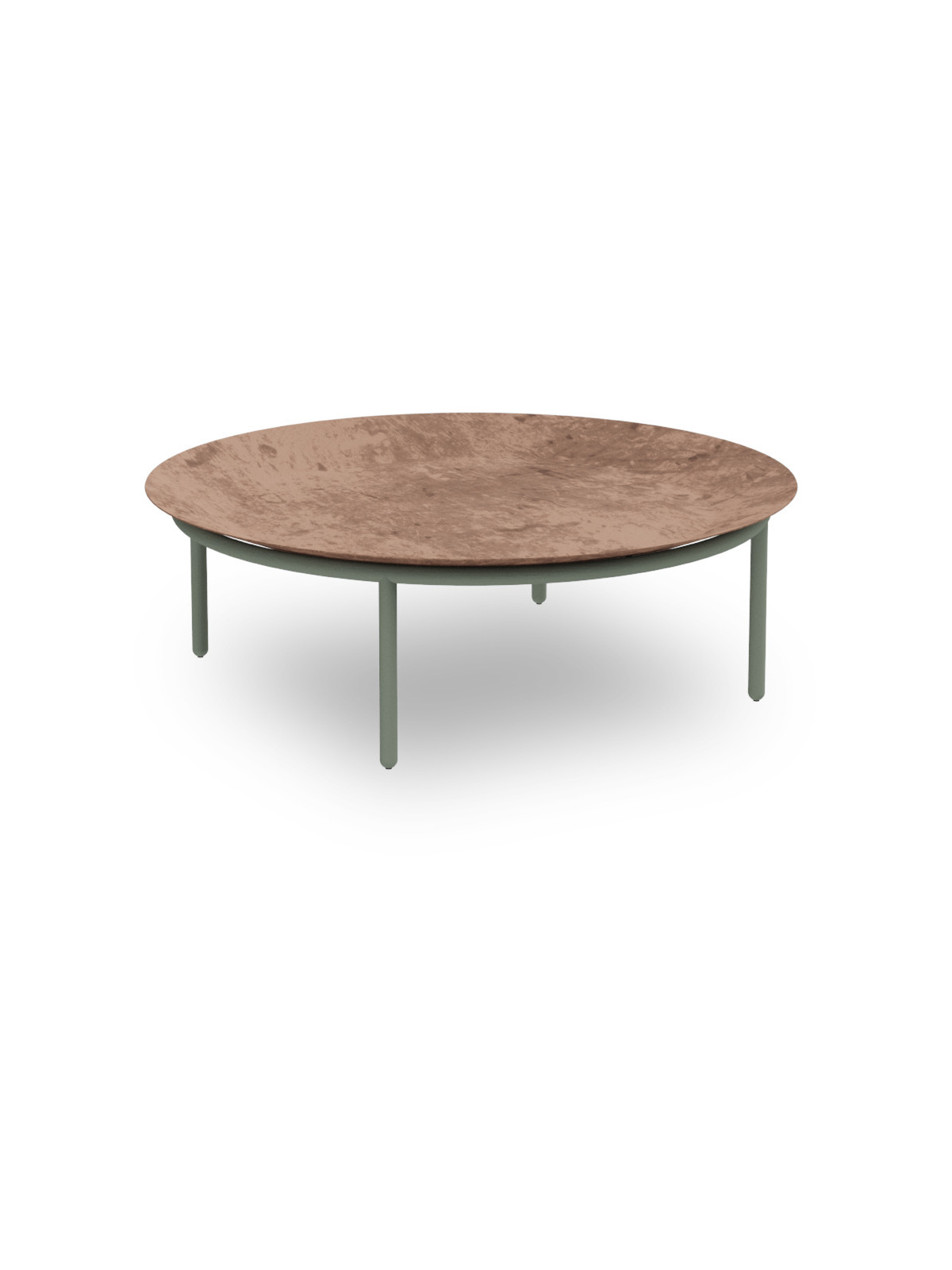 Tavolo caffè, struttura metallo minimale con top in metallo appoggiato H25 Ø78.