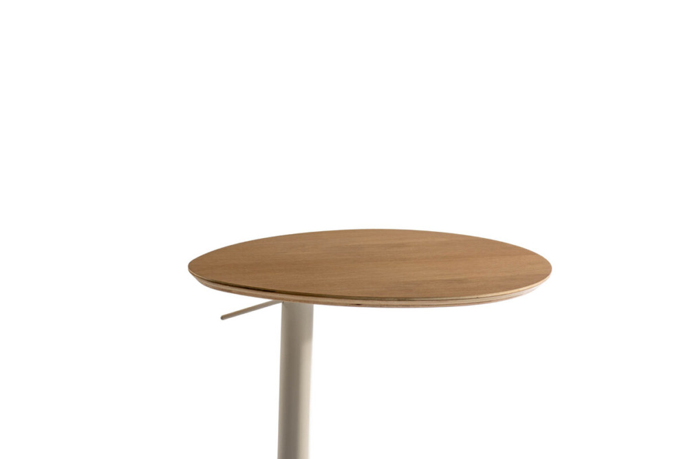 Tavolo side, regolabile in altezza. Struttura e base in metallo. Top disponibile in diverse finiture.